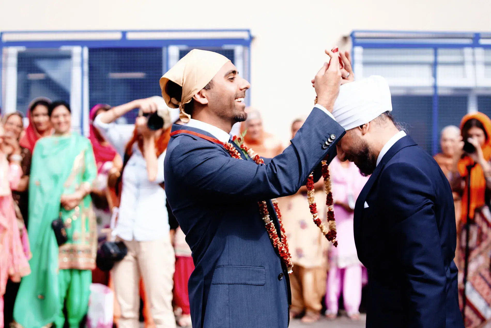 After the exchange of flower garlands near the temple, symbolizing the union of the families, the ceremony proceeds to a joyous tea-party featuring delightful Indian sweets and snacks. Following this heartwarming tradition, all invited guests convene in the main hall of the Gurdwara, where sacred hymns fill the air.